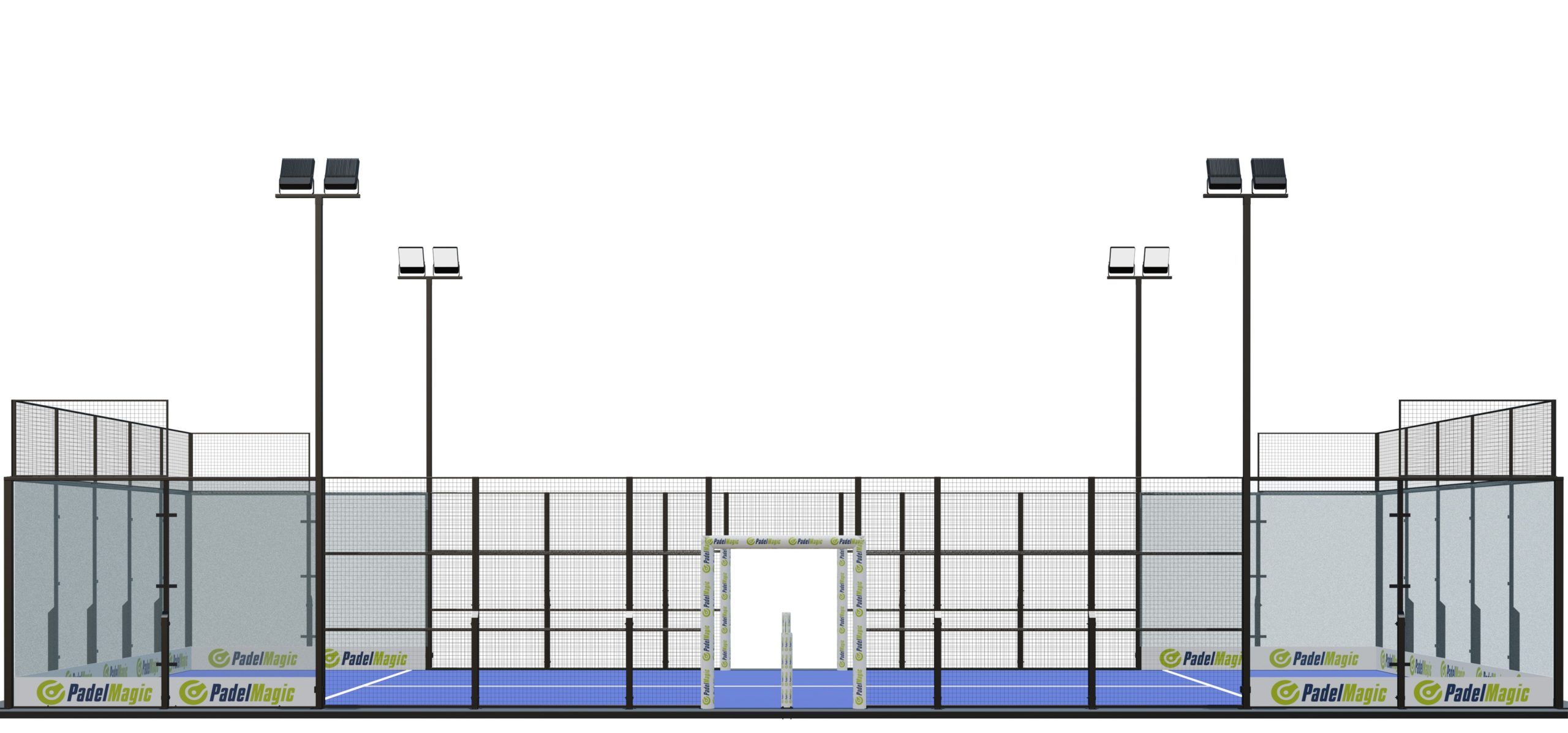 - All our padel courts include the complete set required to install a fully equipped padel court: