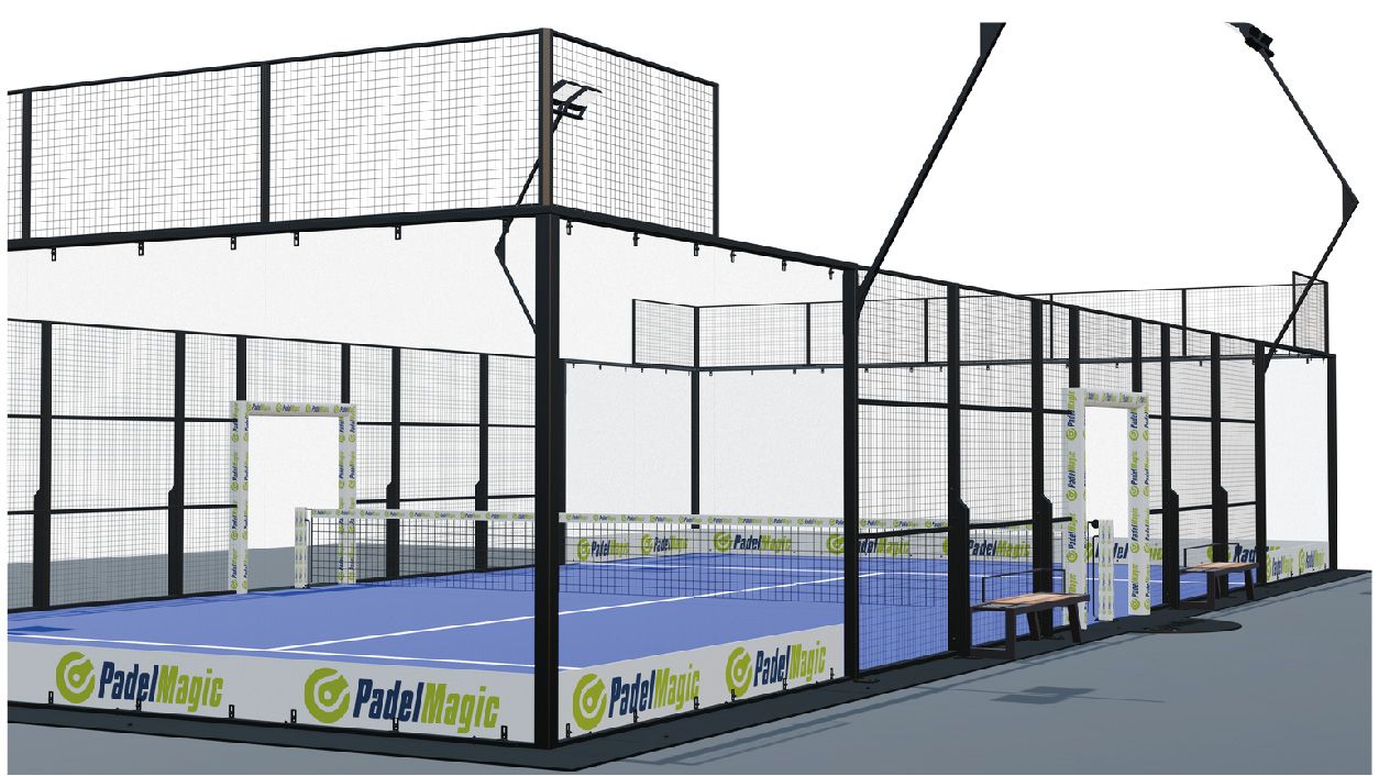 • Nuestra pista de pádel portátil se puede adaptar a cualquier modelo de nuestras pistas. Es decir, podemos convertir nuestros tres tipos de pistas en  su versión portátil gracias a nuestro perímetro especialmente diseñado y fabricado para dotar a la pista de una rigidez y robustez óptimas.